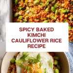 This Baked Kimchi Cauliflower Rice is a flavorful, healthy twist on traditional fried rice, combining spicy kimchi, tender cauliflower rice, and hearty edamame. Baked to perfection with a vibrant mix of Korean chili paste and savory soy sauce, it’s a perfect low-carb, gluten-free dish that makes a satisfying meal topped with green onions, toasted sesame seeds, and a fried egg for extra protein.