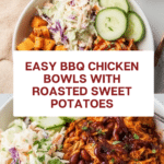 These BBQ Chicken Bowls with Sweet Potatoes are a flavorful and satisfying meal perfect for any night of the week. Tender shredded chicken smothered in tangy BBQ sauce pairs beautifully with roasted sweet potatoes and fresh, crunchy coleslaw. This dish is easy to prepare and packed with bold flavors.