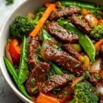 This Beef Stir Fry with Vegetables is a quick and flavorful dish featuring tender slices of beef seared to perfection, paired with crisp, colorful vegetables and a savory-sweet sauce. Perfect served over steamed rice, this stir fry is a nutritious and satisfying meal that comes together in under 30 minutes.