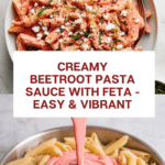 Keywords: beetroot pasta sauce, creamy beet sauce, vegetarian pasta, healthy pasta recipe, beet pasta with feta