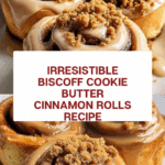 Keywords: Biscoff cookie butter cinnamon rolls, easy cinnamon rolls, Biscoff glaze, baked sweet rolls, cinnamon roll recipe