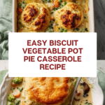 This Biscuit Vegetable Pot Pie Casserole is a comforting, hearty dish perfect for cozy evenings. It features tender mixed vegetables in a creamy sauce, topped with flaky, buttery biscuits for a satisfying meal everyone will love.