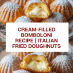 Bomboloni alla Crema are Italian filled doughnuts made from a soft, sweet yeast dough, fried until golden, and filled with rich, creamy vanilla pastry cream. These delightful treats are dusted with powdered sugar and perfect for a decadent breakfast or an indulgent dessert.