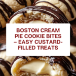 Boston Cream Pie Cookie Bites are delightful treats combining soft, fluffy cookies filled with creamy vanilla custard and topped with a rich chocolate drizzle. Inspired by the classic Boston cream pie dessert, these bite-sized cookies offer a perfect balance of sweetness and texture, making them an irresistible snack or dessert.