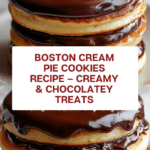 These Boston Cream Pie Cookies are a delightful twist on the classic dessert, combining buttery cookies with a luscious whipped cream filling and a rich chocolate glaze. Perfectly baked to golden edges with soft centers, these sandwich cookies capture the essence of a Boston cream pie in bite-sized form, offering a delicious treat that’s elegant and indulgent.
