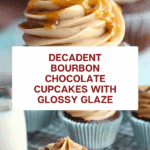 These Bourbon Chocolate Cupcakes are rich, moist, and packed with deep chocolate flavor enhanced by a hint of bourbon. Topped with a smooth chocolate buttercream frosting and finished with a glossy bourbon glaze, they make an irresistible treat for any special occasion.