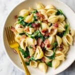 This creamy Brie pasta is a simple yet indulgent dish perfect for a cozy night in. With crispy pancetta and fresh baby spinach, it balances rich flavors and vibrant greens in every bite.