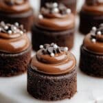 Delightful Brownie Petit Fours featuring rich, fudgy brownies topped with a smooth semisweet chocolate ganache and a hint of fleur de sel for a perfect balance of sweet and salty flavors. These bite-sized treats are perfect for parties or an elegant dessert platter.