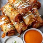 These Buffalo Chicken Egg Rolls are a perfect fusion snack combining crispy egg roll wrappers with a spicy, cheesy buffalo chicken filling. Air-fried to golden perfection, they offer a crunchy exterior with a flavorful, melty interior. Ideal for game day, parties, or a tasty appetizer, these egg rolls are served with ranch or blue cheese dressing for dipping.