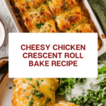 This Cheesy Chicken Crescent Roll Bake is a comforting and easy meal perfect for busy weeknights. Tender shredded chicken wrapped in flaky crescent rolls and smothered in a creamy cheese sauce creates a delicious, family-friendly dish.
