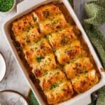 - Bake: Preheat your oven to 350°F (175°C). Place the baking pan in the oven and bake for 30 to 40 minutes, or until the crescent rolls are golden brown on top and the sauce is bubbly around the edges.