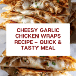 Cheesy Garlic Chicken Wraps are a delicious and easy meal perfect for lunch or a quick dinner. Packed with shredded chicken, melted cheeses, and a flavorful garlic butter finish, these wraps are both satisfying and simple to prepare.
