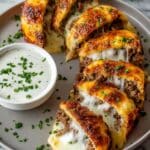 This Cheesy Ground Beef Roll is a delicious and comforting savory pastry perfect for any meal or gathering. Ground beef is seasoned and cooked to perfection, then combined with cheddar and mozzarella cheeses, fresh parsley, and wrapped in flaky crescent roll dough. Baked until golden and bubbly, this dish is easy to make and sure to impress with its rich flavors and gooey cheese centers.