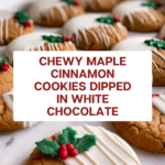 These Chewy Maple Cinnamon Cookies with White Chocolate are a delightful twist on a classic treat. The warm flavors of maple and cinnamon combine perfectly with sweet white chocolate and festive holly berry sprinkles, making these cookies ideal for the holiday season or any cozy occasion.