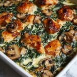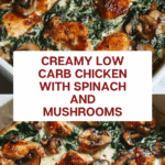 This Chicken, Spinach, and Mushroom Low Carb Oven Dish is a creamy, flavorful meal perfect for weeknight dinners. Tender chicken breasts baked in a rich spinach and mushroom sauce make it both satisfying and healthy.
