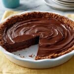 This luscious Chocolate Pie recipe features a smooth, rich chocolate pudding filling nestled in a pre-baked pie crust. Made with bittersweet chocolate and a creamy custard base, this no-bake pie sets beautifully in the refrigerator for a decadent, chilled dessert that’s perfect for any occasion.