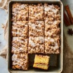 This delicious Coffee Cake features a tender, moist crumb layered with a crunchy cinnamon pecan streusel topping. Finished with a sweet vanilla glaze, it’s the perfect accompaniment to your morning coffee or an afternoon treat. Made from scratch with simple pantry ingredients, this cake is sure to become a family favorite.