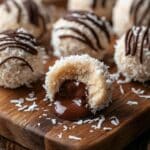 Delight in these indulgent Coconut Cookie Balls with luscious chocolate centers. Made with sweetened shredded coconut and creamy condensed milk, each bite reveals a rich dark chocolate surprise, finished with a silky chocolate drizzle. Perfect for a no-bake treat that’s easy to prepare and wonderfully satisfying.