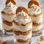 Cookie Butter Cheesecake Cups are a delightful no-bake dessert combining the rich flavors of creamy cheesecake with the unique spiced sweetness of Biscoff cookie butter. These individual servings feature a crunchy cookie crumb crust layered with a smooth, mousse-like cheesecake filling, perfect for a quick yet indulgent treat.