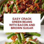 Crack Green Beans is a sweet and savory side dish featuring tender green beans tossed in a rich sauce made from brown sugar, butter, soy sauce, garlic powder, and black pepper, topped with crispy crumbled bacon and baked to perfection. This comforting casserole combines smoky, sweet, and umami flavors, making it a perfect accompaniment for any meal.