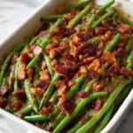 Keywords: crack green beans, green bean casserole, baked green beans, side dish, bacon green beans, sweet and savory green beans