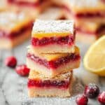Keywords: cranberry lemon bars, tart lemon bars, holiday dessert, layered dessert bars, fresh cranberry recipe