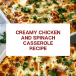 This creamy chicken and spinach casserole is a comforting and flavorful dish perfect for family dinners. Combining tender shredded chicken with a rich, cheesy sauce and nutritious spinach, it’s both satisfying and easy to prepare.