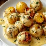This Creamy Garlic Sauce Baby Potatoes recipe features tender, buttery baby potatoes enveloped in a rich and velvety garlic cream sauce. Perfect as a comforting side dish, the sauce combines garlic, butter, heavy cream, and a hint of Dijon mustard, finished with fresh parsley and optional Parmesan for a flavorful and elegant addition to any meal.