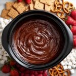 This Crock Pot Chocolate Fondue is an easy and indulgent dessert perfect for gatherings and cozy nights. Rich semi-sweet and milk chocolate chips are slowly melted with heavy cream, vanilla, and a pinch of salt in a crock pot to create a luscious, smooth fondue perfect for dunking your favorite dippers like marshmallows, fruit, and pretzels.