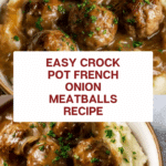 This Crock Pot French Onion Meatballs recipe combines savory frozen meatballs with sweet, caramelized onions and a rich brown gravy, all slow-cooked to perfection. Topped with melted Gruyère cheese, it’s a comforting and hearty dish perfect for serving over mashed potatoes, rice, or noodles.