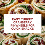 These Delicious Turkey Cranberry Pinwheels are a perfect blend of creamy, tangy, and savory flavors wrapped in a soft tortilla. They make a great appetizer or snack for any occasion, combining turkey, cream cheese, and a hint of sweetness from dried cranberries.