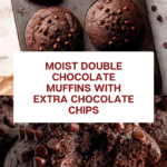 Keywords: double chocolate muffins, chocolate muffins, chocolate chip muffins, moist muffins, breakfast muffins, easy muffin recipe, cocoa powder muffins