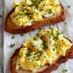 Keywords: egg toast, ricotta cheese, soft scrambled eggs, quick breakfast, sourdough toast, chives, easy breakfast recipe