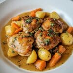 This Easy Slow-Cooker Maple Dijon Chicken & Vegetables is a comforting and flavorful one-pot meal featuring tender bone-in chicken thighs cooked low and slow with a sweet and tangy maple Dijon sauce. Baby carrots, baby potatoes, and onions are simmered alongside, absorbing the luscious sauce for a hearty and satisfying dinner that’s effortless to prepare.