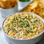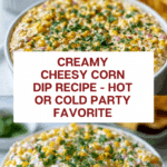 This easy traditional corn dip is a creamy, cheesy appetizer perfect for parties and gatherings. Combining sweet corn with a blend of sour cream, mayonnaise, cream cheese, and a mix of cheddar and pepper jack cheeses, it’s seasoned with flavorful spices and fresh vegetables. Serve it cold or baked hot for a bubbly, golden treat that everyone will love.