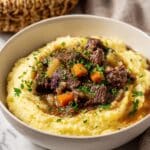 This Fall Apple Cider Stew Mash is a comforting, hearty dish perfect for cooler days. Tender beef simmers in a flavorful apple cider broth, paired with creamy cheddar mashed potatoes for a satisfying meal.