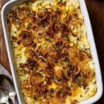 12. Top Casserole with Fried Onions: After baking, remove the casserole from the oven and evenly sprinkle the crispy fried onions over the top, adding a delightful crunch and extra flavor to the dish.