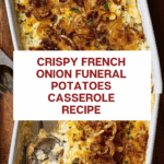 French Onion Funeral Potatoes are a comforting, cheesy casserole loaded with tender potatoes and topped with crispy fried onions. This rich and savory dish is perfect for gatherings or a cozy family meal.