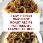 Keywords: French onion pot roast, slow cooker pot roast, chuck roast recipe, comfort food, beef roast, onion gravy, slow cooked beef, easy pot roast