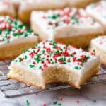 Keywords: sugar cookie bars, frosted cookie bars, cream cheese frosting, easy dessert, baked cookie bars, vanilla sugar bars