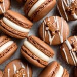 These Gingerbread Macarons combine the delicate texture of traditional French macarons with festive gingerbread spices and a creamy molasses buttercream filling, perfect for holiday celebrations. The macarons are decorated with melted white chocolate and gingerbread men sprinkles, creating a beautiful and delicious seasonal treat.