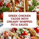 Keywords: Greek chicken tacos, whipped feta sauce, Mediterranean tacos, easy chicken tacos, healthy chicken recipe, Greek yogurt sauce