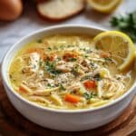Greek Lemon Chicken Soup is a comforting and tangy dish that brightens any meal with its fresh lemon flavor. This hearty soup combines tender chicken, fluffy rice, and a creamy egg-lemon broth for a perfect balance of taste and texture.
