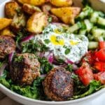 This Greek Meatball Bowl recipe combines juicy, herb-infused meatballs with crispy roasted potatoes, a fresh Greek salad, and creamy homemade tzatziki sauce. It’s a vibrant, satisfying bowl perfect for a wholesome lunch or dinner, packed with Mediterranean flavors and easy to prepare.