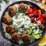 Keywords: Greek turkey meatballs, tzatziki sauce, baked meatballs, healthy meatballs, Mediterranean recipe, Greek cuisine, ground turkey, homemade tzatziki