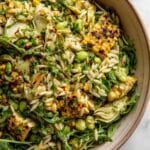 This vibrant Grilled Corn Orzo Salad with Scallion Dill Dressing is a fresh and flavorful dish perfect for summer gatherings or a light meal. Featuring smoky grilled corn, tender orzo pasta, and a creamy, herbaceous scallion dill dressing, it’s packed with bright ingredients like lemon, fresh dill, and oregano. Edamame and artichoke hearts add texture and a boost of protein, while optional red pepper flakes and vegan parmesan provide a touch of heat and umami.