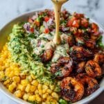 This Grilled Shrimp Bowl with Avocado Corn Salsa & Creamy Garlic Sauce is a vibrant and fresh meal perfect for summer. Juicy shrimp are seasoned and grilled to perfection, served atop a zesty corn salsa with creamy avocado, and finished with a tangy garlic sauce that brings all the flavors together. It’s a colorful, nutritious, and delicious bowl ideal for a light lunch or dinner.