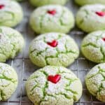 These festive Grinch Cookies are a fun and delicious treat, perfect for the holiday season. With a bright green color and a peppermint hint, they add a playful twist to traditional cookies. Topped with a red heart sprinkle, they capture the spirit of the Grinch in every bite.