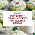 These festive Grinch Cookies are a fun and colorful treat perfect for the holiday season. Made with a white cake mix base, infused with peppermint and vanilla extracts, and dyed a vibrant green, these soft, chewy cookies are rolled in powdered sugar and topped with a red heart-shaped sprinkle to capture the whimsical spirit of the Grinch. They bake quickly, making them an easy and delightful dessert for holiday gatherings or gifting.