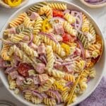 Keywords: Grinder pasta salad, rotini pasta salad, deli meat pasta salad, Italian pasta salad, picnic pasta salad